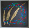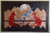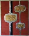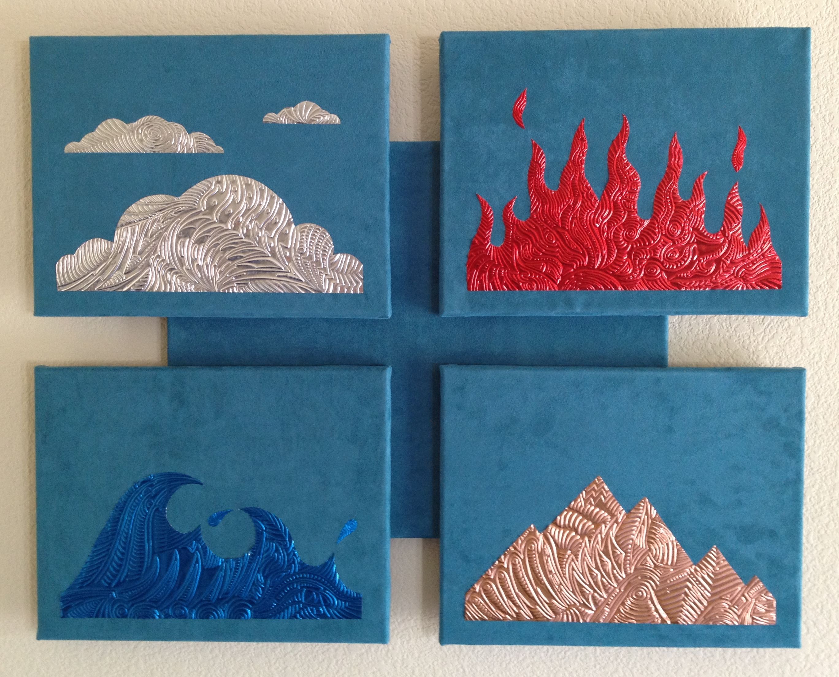 mounting the EMAs on stretched canvas frames covered with a variety of rich,