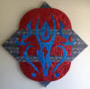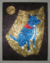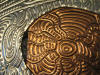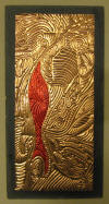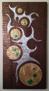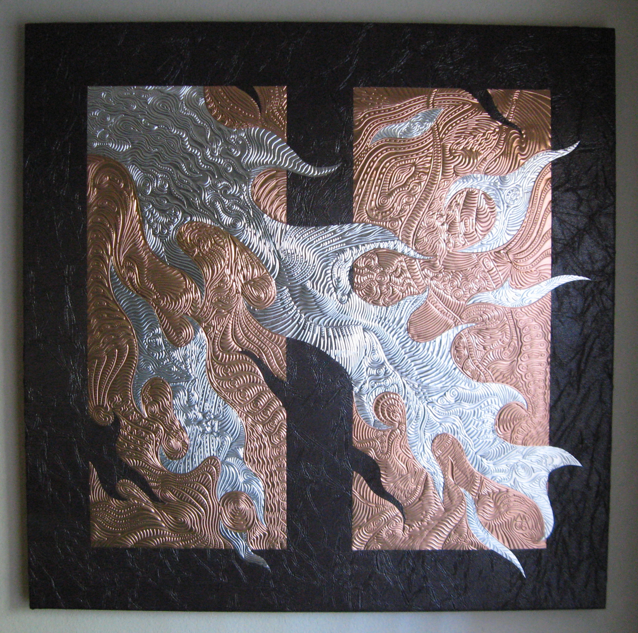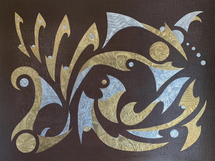embossed metal artwork (EMA), and it consists of intricate embossed patterns