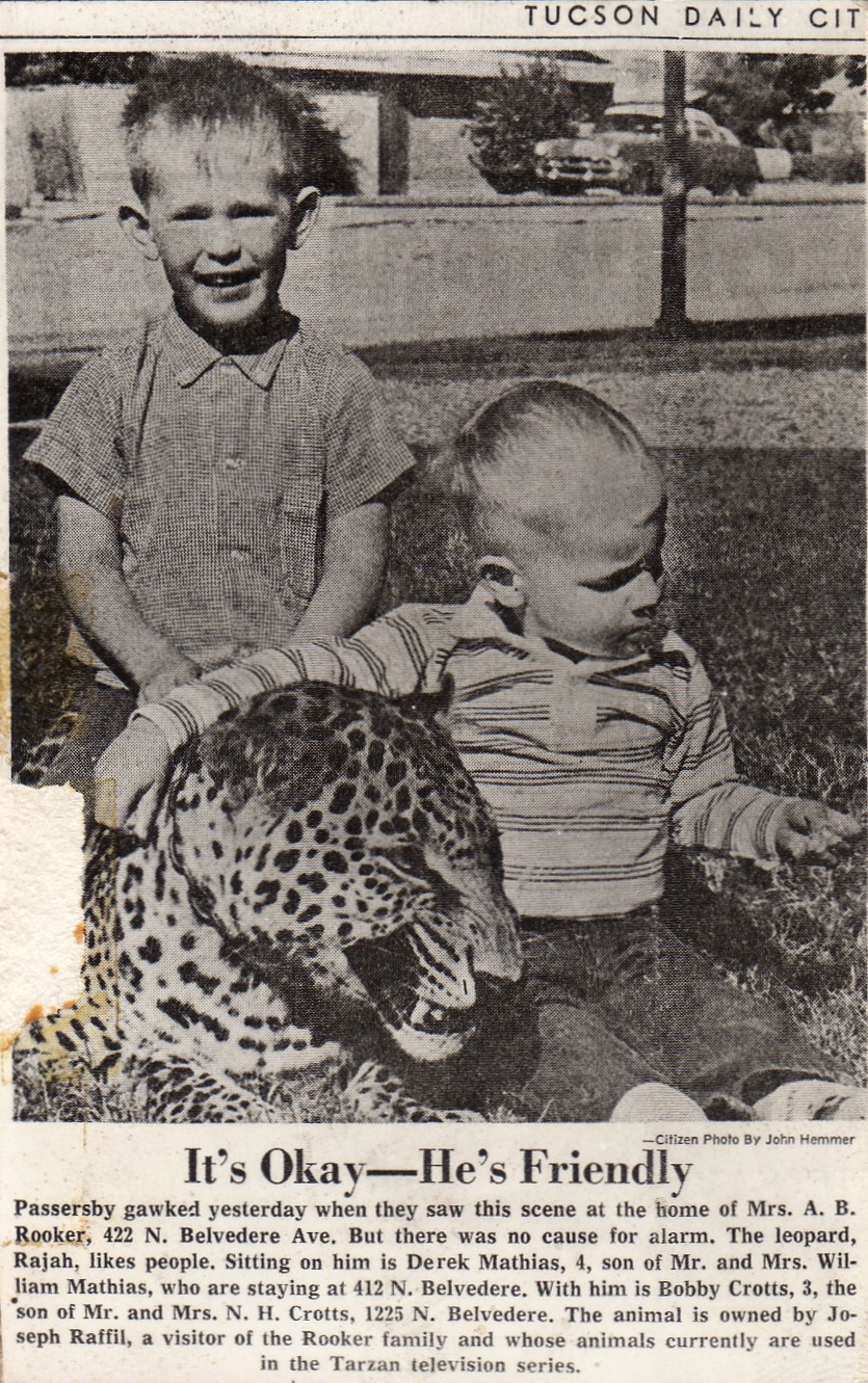 Me sitting on a leopard on the front lawn of my grandmother's next-door neighbor in Tucson, around 1966.